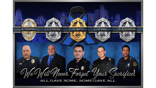 On July 7, 2016, a sniper coordinated an ambush on a group of police officers in Dallas, Texas. Dallas 5 commemorates the five officers who lost their lives in the attack.